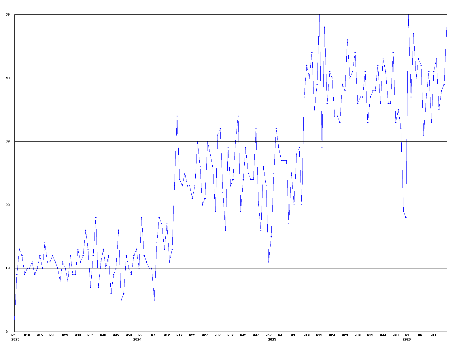 Plays per week voor Toontje Lager