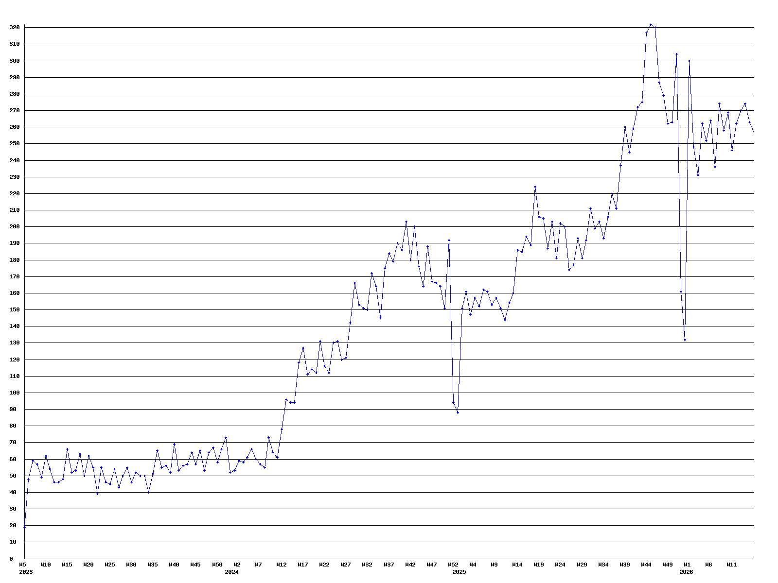 Plays per week voor Whitney Houston